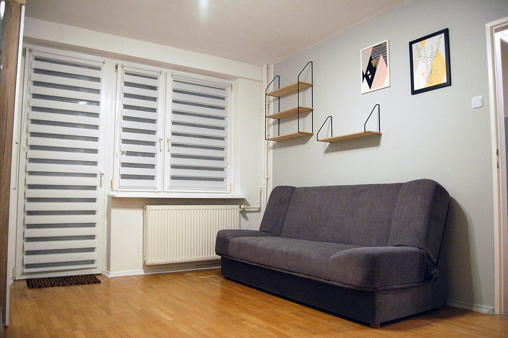 Wyposażenie: 2 krzesła, nowa kanapa, dwie szafy, regał, nowa pralka Candy, kuchnia gazowa, lodówka. Dogodne połączenia tramwajowe i autobusowe. Mieszkanie rozkładowe, składa się z pokoju (~15,6m2), oddzielnej kuchni (~4,7m2), łazienki (~2,7m2), przedpokoju (~3,4m2). Mieszkanie posiada balkon (~2,3m2). Istnieje możliwość podłączenia telewizji kablowej oraz Internetu (UPC, Vectra, Netia), w mieszkaniu przygotowana jest infrastruktura kablowa. Dookoła bloku bardzo zielono, blisko park oraz jeziorko.
